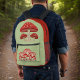 This cute backpack feature two vivid, stylised mushroom designs in red and tan againt a backgrouond of boho sage green. The red of the side and top accent the green. The mushrooms are printed on but have a faux textured, textile-like look. Whether you're looking for a gift for a mycologist, are a fun guy (fungi), or just love cute mushroom designs, this might be the right pick for you.