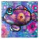 Whimsical Abstract Big-Eye Fish Purple Teal Pink Tile