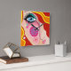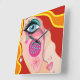 A trendy addition for your home with this colourful abstract design of a whimsical face with large blue eye, patterns and wavy red hair with yellow and orange stripes.