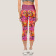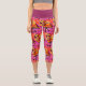Whimsical Abstract Flamingo Pink Orange Floral Capri Leggings