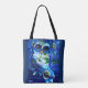 Whimsical Abstract Owl Blue Green Floral Flowers Tote Bag