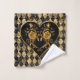 A whimsical and romantic goth design to turn an ordinary pillow into a Valentine featuring an elegant heart with golden roses on a dramatic black and gold harlequin pattern background.