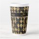 A whimsical and romantic goth label to turn an ordinary mug into a Valentine's Love Potion featuring an elegant heart with golden roses on a dramatic black and gold harlequin pattern background and rich gold letters.