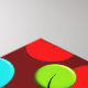 Whimsical and Quirky Tree Art, "The Magical Forrest", artist uses solid bright colours in red, yellow. blue and lime green to create this unique piece.