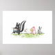 Whimsical watercolor features a marching band of instrument-playing skunk, duck, pig and rabbit