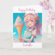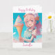 Whimsical Anime Girl with Ice Cream Cone Birthday Card