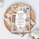 Celebrate your little adventurer's milestone with a charming invitation that captures the spirit of a magical woodland journey. This delightful invitation features a whimsical gathering of adorable woodland animals, each lovingly handcrafted in soft and dreamy watercolors. The sweet faces of a curious fox, a playful rabbit, a mischievous squirrel, a gentle bear, a chirpy bird, a wise owl, a masked racoon, and a spiky hedgehog will immediately capture the hearts of your guests. Surrounding the woodland creatures is a delicate arrangement of autumn foliage, embracing the beauty of the changing season. The earthy tones and warm hues of the foliage complement the watercolor illustrations, adding a touch of cosiness to the overall design.