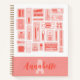 Whimsical Art Supplies Coral Red Pattern Monogram Notebook