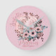 Whimsical Autumnal Pink Pumpkin Floral Round Clock