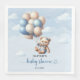 Unleash the charm of your boy baby shower party with the enchantingly designed napkins, graced with the illustration of an adorable baby bear. The bear, tenderly cradling blue and ivory balloons, descends from a sky blue canvas, evoking a sense of whimsical innocence. This charming 'Baby bear with balloons' napkin design perfectly captures the spirit of joyous celebrations, making it an unparalleled choice for creating an eternal memory of your special occasion.