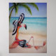 "Beach Babe Flamingo No. 1" Watercolor Art 18x24 Poster by artist Jean Weiner