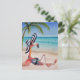 Whimsical Beach Babe Flamingo No. 1 Watercolor Art Postcard