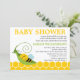 © 2012 Socialite Designs. The mother-to-bee will certainly buzz to celebrate her upcoming birth with this whimsical bee baby shower invitation. Our vector design incorporates a sweet little be inside a pea pod and a honeycomb pattern. A wonderful invitation for the gender-neutral baby shower.