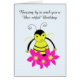 A fresh and fun design featuring a soft background with a whimsical bee and some bright coloured flowers. A sunny birthday greeting.