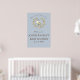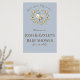 Whimsical baby shower welcome poster sign can be used for co-ed or single honoree, features cute bee and flower wreath with customisable text on pale blue background.
