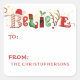 Whimsical gift TO FROM sticker tags featuring a festive Christmas holiday typography design of the word BELIEVE in red and green Santa, elves and reindeer lettering. Contact the designer BEFORE ordering via Zazzle Chat or makeitaboutyoustore@gmail.com if you'd like this design on another product or would like coordinating items.