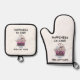 Oven Mitt & Pot Holder Set with a playful illustration of a birthday-themed cat design that is cute, whimsical, and humourous.