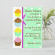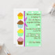 Colourful fun birthday party invitations, perfect for any young girl. Decorated with yummy looking cartoon graphics of cupcakes running, down the left side, a green with white polka dot text side, and a mauve ribbon running between them. Customise the text in style, colours, and size to your likes. Great looking birthday invitation. Matching stamps available.