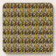 Whimsical black and gold peacock feather pattern coaster
