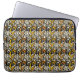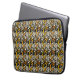 Whimsical black and gold peacock feather pattern laptop sleeve