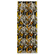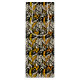 Stylised whimsical hand-drawn peacock feather pattern in black and gold.