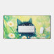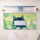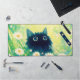 Whimsical Black Cat Daisy Meadow Teal Sky Desk Mat