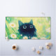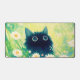 Brighten your workspace with this whimsical black cat desk mat, capturing a moment of playful curiosity in a sunlit field. This charming design features an adorable, fuzzy black cat with big, expressive white eyes peeking up from a lush meadow of vibrant green grass. The foreground is dotted with cheerful, pristine white daisy flowers and sparkles of light. The background is an artistic blend of luminous lime yellow and a clear aqua teal sky, creating a deeply ethereal and bright atmosphere. This black cat desk mat is an ideal accessory for cat lovers, nature enthusiasts, and anyone looking for a cheerful, high-contrast, and artistic way to personalize their computer setup with a sunny, daisy field theme.