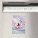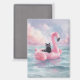 Add a playful coastal accent to your fridge, locker, or office with this whimsical watercolor magnet featuring a black cat floating on an adorable pink flamingo float, on a turquoise ocean. Soft pastel pink and blue tones with gentle ocean details create a lighthearted seaside charm.