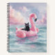 Capture your thoughts, notes, or sketches with this whimsical watercolor journal featuring a black cat floating on a pastel flamingo in gentle ocean waves. Soft pink and blue tones and delicate seaside details create a playful, imaginative touch for daily writing.