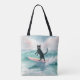 Carry seaside charm wherever you go with this whimsical watercolor tote featuring a black cat surfing under a pastel summer sky. Soft pink and blue tones and playful ocean details make this tote both stylish and lighthearted.
