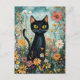 Whimsical Black Cat with Wildflowers Illustration Postcard