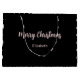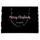 Merry Christmas is in a pale pink script on this black Christmas gift bag. Additional text non-script text for the recipient's name is under Merry Christmas. A pattern of pale pink Christmas trees also appears on this black gift bag.