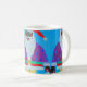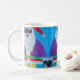 Vibrantly coloured whimsical artistic mug with an African American Santa