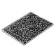 This unique pattern features stylized spiral flowers and simple leaf accents. The dense white design sits on a clean black background, creating a whimsical and graphic look. This pattern is modern, fun, and eye-catching, with a cool, flowing style.