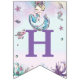 Complete your party with this whimsical mermaid flag banner decoration. Featuring a pretty mermaid and cute ocean creatures. Personalise it easily with a name and occasion or with any special message! Great for baby shower, birthday party, Christening / Baptism, New Baby and more! Simply change the letters to spell out your desired wording. You may need to purchase more than 1 set of bunting if your wording is very long.