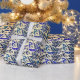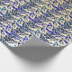 Whimsical blue and gold peacock feather pattern wrapping paper