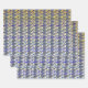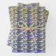 Whimsical blue and gold peacock feather pattern wrapping paper sheet