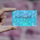 Whimsical blue aqua faux Glitter unique girly business card. Beautiful, modern and cool card for the trend-savvy and art-loving hip trendsetter. This stylish beautiful design would be great for women who enjoy trendy sparkly designs. Whether you’re a beautician,hair stylist, artist or in any other modern profession show off your personal style, look fashionable, trendy and feel stylish with a unique design on your business card or customise it over another product of your choice. PLEASE NOTE: These are flat printed graphics - no real glitter, jewels or raised parts.