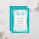 blue colour starfish couple bridal shower invitations, water and light blue colours design.