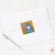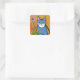 Whimsical Blue Cat with Pink Flower Folk Art Square Sticker