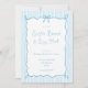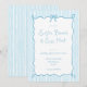 This editable light blue whimsical Easter brunch invitation sets the tone for your Easter party. The ELIJAH Collection features a white and pastel blue stripe background with hand drawn wavey border topped with a coquette bow, combined with a set of hand lettered fonts in dark blue with editable text to add visual interest to your blue hand drawn easter brunch invites.