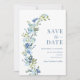 Whimsical Blue Floral Wreath Save The Date Invitation