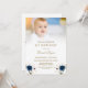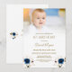 Elegant card design featuring watercolour delicate blue flowers, faux gold outlined roses, baby photo (easy to be added), on a white background. Use Personalise tool to add your info. For matching items, please, visit my Floral Birthday Collection.
