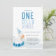 Whimsical Blue One Silly Goose First Birthday Invitation