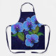 Botanical floral whimsical blue orchid flower painting apron. This beautiful print all over apron features four brightly coloured blue and purple orchids over leaves and a dark midnight blue background. Whimsical and bright, this pretty apron is perfect for orchid lovers. This apron's design is a unique digital illustration painting of blue orchid flowers. Colours are blue, purple, green... background is midnight blue. Add a pop of colour while you cook, bake, garden or do anything else you might want an apron for.