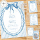Whimsical Blue Watercolor Bow Stripe Wedding Invitation