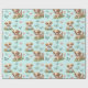 Whimsical Blue Watercolor Puppies and Butterflies Wrapping Paper