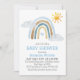 Whimsical Blue Watercolor Rainbow Baby Shower Invitation