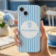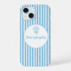 Whimsical Blue White Stripe Preppy Monogram iPhone 15 Case
