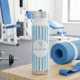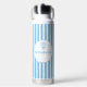 Whimsical Blue White Stripe Preppy Monogram Water Bottle
